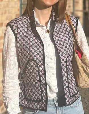 Jede Steppweste ist einzigartig, sorgfältig handgefertigt mittels traditioneller Handblockmethode. Erfahrene Kunsthandwerker schnitzen die Motive in Holzblöcke, mit denen anschließend der Stoff von Hand bedruckt wird.